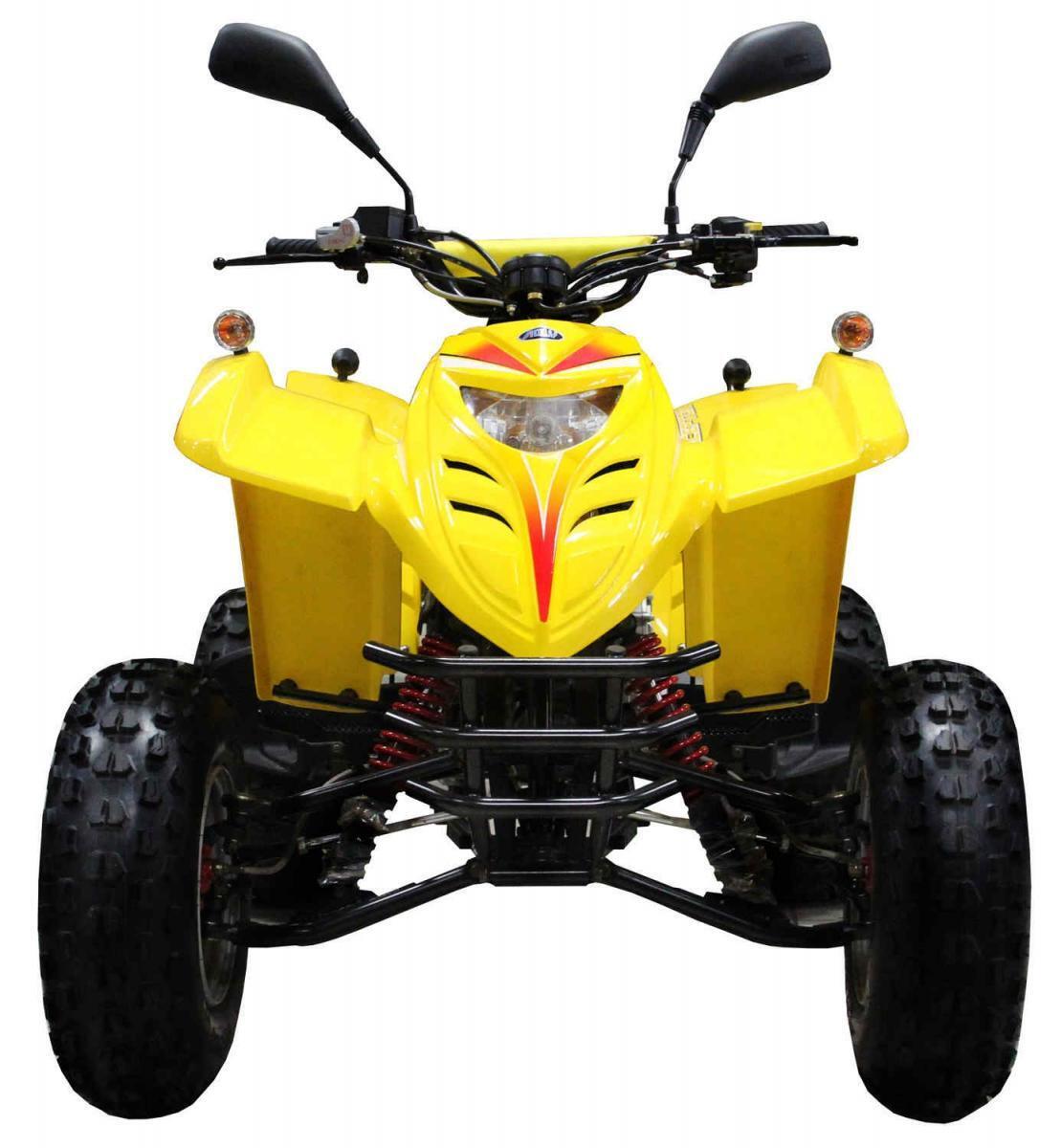 Квадроцикл оборудован независимой передней подвеской и зависимой задней, что позволяет уверенно передвигаться по пересеченной местности. Дисковые передние и барабанные задние тормоза обеспечивают надежную остановку в любых условиях. Прочные колеса с диаметром 16 дюймов и дорожным рисунком протектора гарантируют отличное сцепление с поверхностью, независимо от типа покрытия.