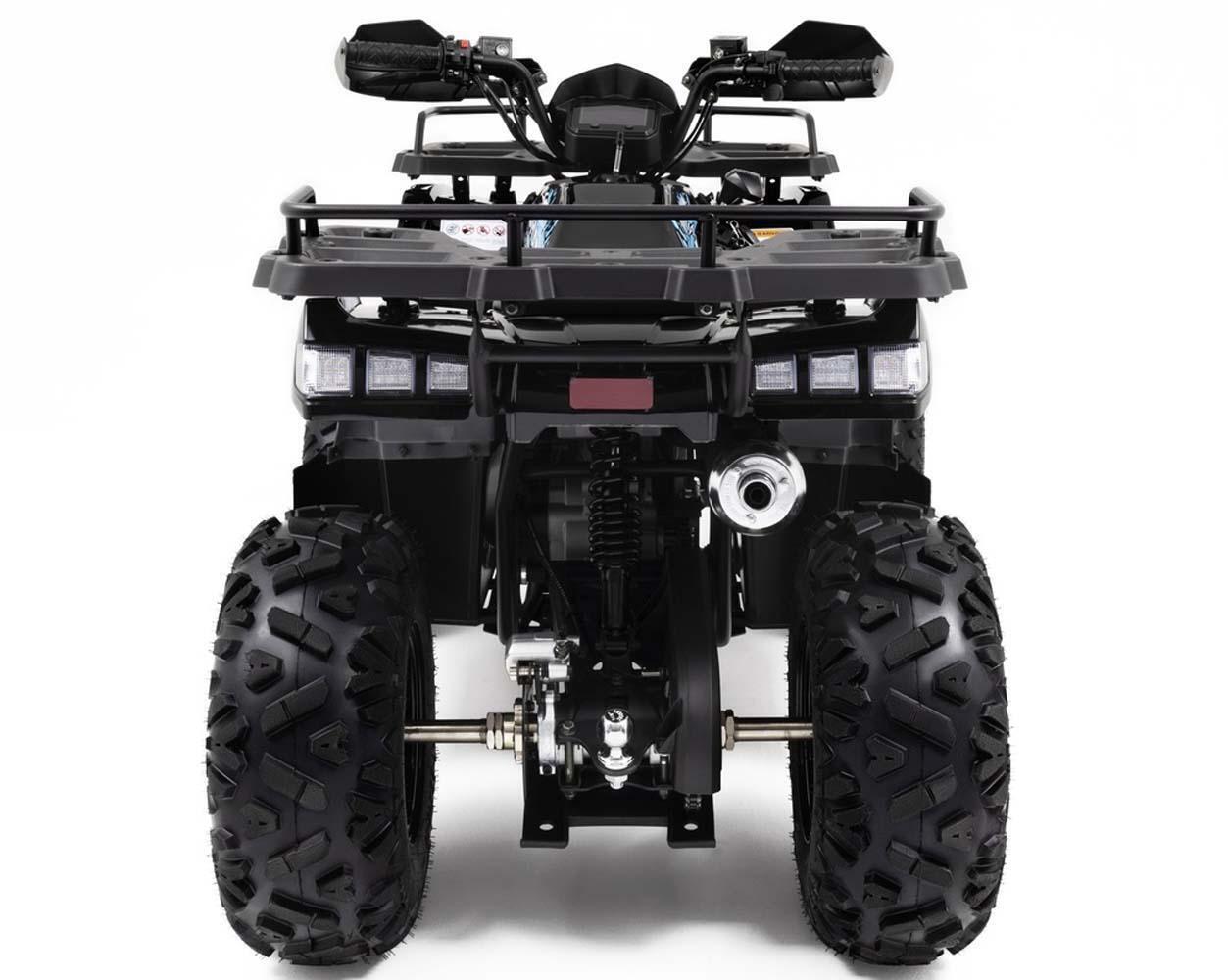 Квадроцикл оснащён двухрычажной подвеской спереди, что улучшает устойчивость и управляемость, снижая риск опрокидывания. Усиленная цепь X-RING 530 с внутренней смазкой минимизирует необходимость обслуживания и предотвращает обрывы, что значительно упрощает эксплуатацию.