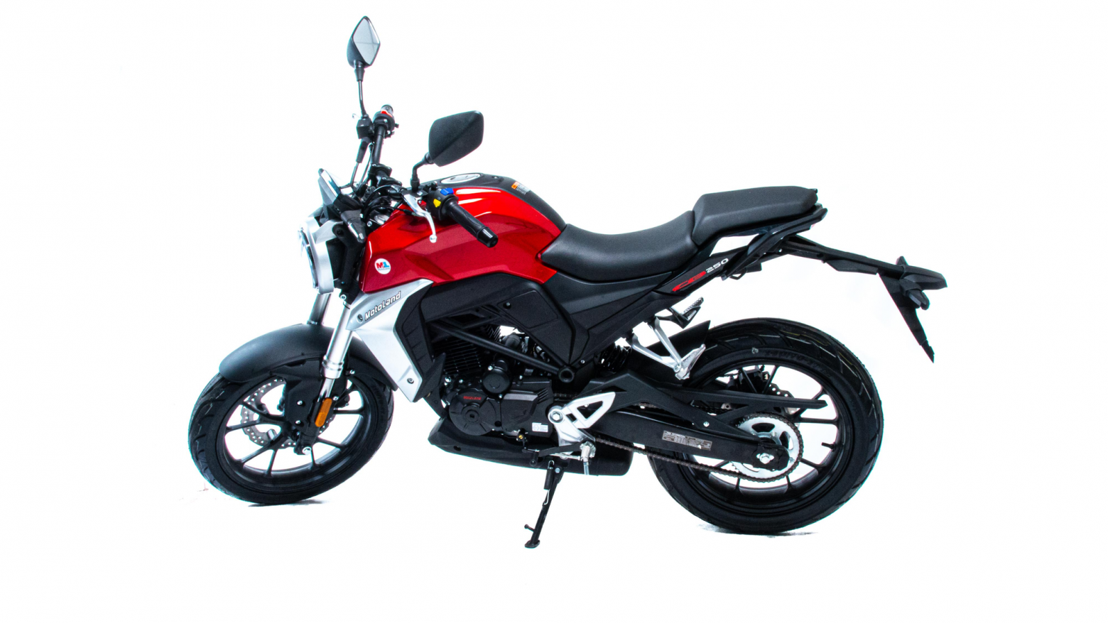 Мотоцикл Motoland CB250 (172FMM-5/PR250) (2022 г.) - новинка 2022 года. Дорожный мотоцикл (стритбайк) MotoLand CB250. CB250 является стильным, ярким и в то же время доступным мотоциклом. Современный облик подчеркивается последними решениями от лидеров мирового мотостроения: светодиодная оптика, дизайн пластика, харатеристики подвески, глушитель, расположенный под рамой. Данную модель выделяет покладистый характер, выверенная посадка, отточенная управляемость в городе и на трассе. Комфортное седло подходит для райдеров среднего роста. СВ250 оснащен двигателем 172 FMM (172FMM-5/PR250) с балансирным валом и 5-ступенчатой коробкой передач, мощностью 21 лс, с воздушно-масляным охлаждением, кикстартером / электростартером. На двигателе установлен карбюратор Keihin PZ 30. Также на новинке установлены усиленные двухпоршневые передние тормоза, литые алюминиевые обода, передняя вилка перевёрнутого типа с большим ходом, которая обеспечивает отличную управляемось для комфортного передвижения, как по городу, так и по бездорожью. Усиленная 520 цепь в сочетании с хорошо подобранными звездами, обеспечивает отличную динамику. Качественные покрышки на 17" ободах, 110/70 и 140/70, обеспечивают отличное сцепление с дорожным покрытием. Рама дуплексная, профилированная, усиленная ребрами жесткости. Удобное мягкое сиденье и жидкокристаллическая цветная панель приборов с подсветкой - порадуют комфортом и удобством. В описании указаны основные характеристики товара.