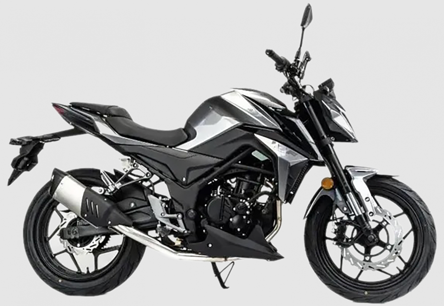 Новинка 2023 года MOTOLAND 250 DF BIG BORE !!! Представляем Вашему вниманию дорожный мотоцикл на шестискоростном двигателе 174 MN (CBS300 с балансиром) , с большим радиатором водяного охлаждения, с электростартером, мощностью 24 л.с. На двигателе установлен карбюратор Keihin PE 34 MV. Также на новинке передние и задние тормоза оснащены 4-х поршневыми суппортами, увеличен R переднего тормозного диска, литые алюминиевые обода , передняя вилка перевёрнутого типа с большим ходом, которая обеспечивает отличную управляемось для комфортного передвижения. Современный дизайн мотоцикла разработан с учетом всех последних новшеств. 520Н усиленная сальниковая цепь в сочетании с хорошо подобранными звездами, обеспечивает отличную динамику. Хорошо подобранные покрышки на 17" ободах, 110/70 и140/70, обеспечивают отличное сцепление с дорожным покрытием. Рама скелетная. Удобное двухэтажное кожаное сиденье и обновленная жидкокристаллическая панель приборов с подсветкой - заставят радоваться комфорту и удобству. Передние и задние суппорта 4-х поршневые. Глушитель прямоточный Akrapovic с увеличенным диаметром трубы. Руль двойной усиленный переходного сечения. Передние удлиненные габаритные огни выполнены вертикально и встроены в пластик. Световое оборудование на экономичных и долговечных светодиодах. Топливный бак 12 л. Цвет серый. В описании указаны основные характеристики товара.