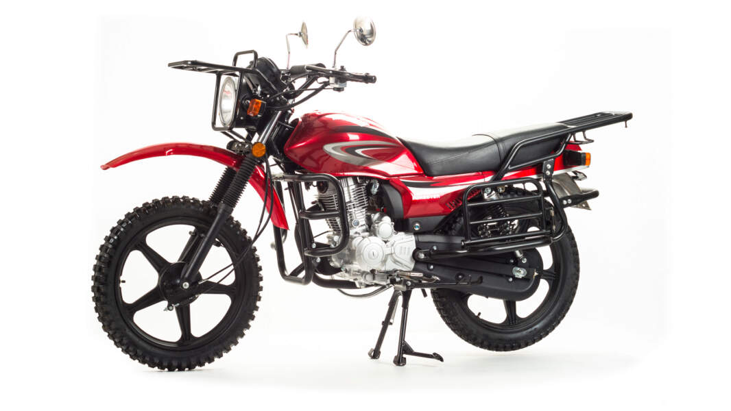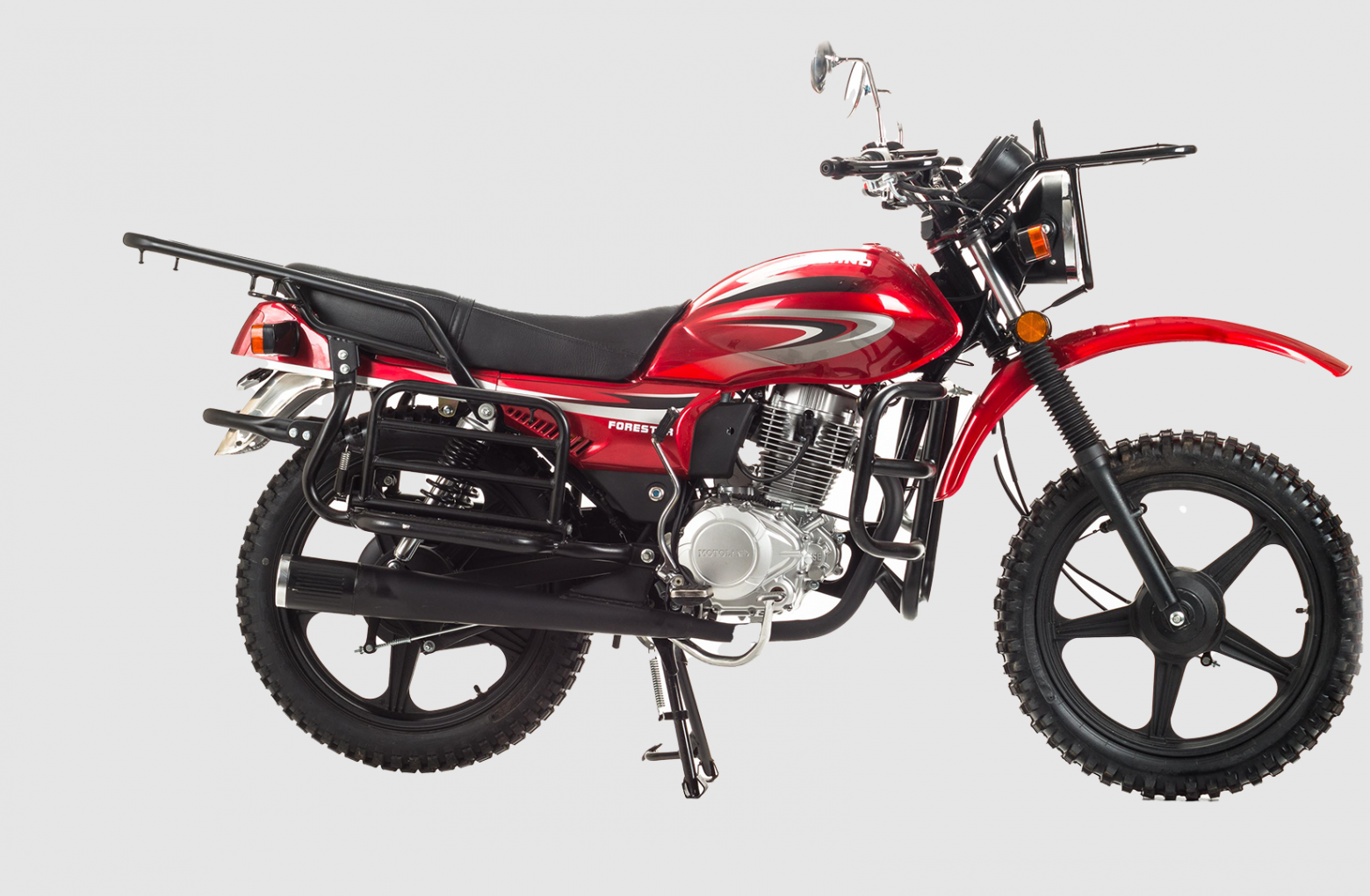 Форестер 200 доступен в красном цвете и отличается классическим функциональным дизайном. Оснащён фарой дальнего и ближнего света, светоотражателями, большим стоп-сигналом. Это настоящая рабочая лошадка с хорошим запасом прочности для тяжёлой каждодневной работы. Диаметр колёс — 18 дюймов. Покрышки с крупными шипами позволяют преодолевать препятствия, уверенно ездить по бездорожью. Большой металлический бак даёт возможность ездить на большие расстояния, не беспокоясь о наличии заправок. Мотоцикл оснащён спидометром с электронным датчиком переключения передач, тахометром. Передние и задние тормоза барабанные, легко регулируются, при необходимости их можно подтянуть даже в полевых условиях. Задняя подвеска включает 2 надёжных амортизатора. Руль обычного сечения с низким подъёмом защищён специальной металлической дугой от повреждений при падении мотоцикла. Также на руле расположен подсос, что позволяет заводить Мотолэнд Форестер, не вставая с сиденья. Мотоцикл Форестер 200 оснащён карбюратором и одноцилиндровым четырёхтактным двигателем 200 см? с большим ресурсом и тихой работой за счет балансированного вала. Механическая трансмиссия содержит 5 передач. Для запуска двигателя можно использовать электростартер и кикстартер. Мотоцикл Мотолэнд Форестер как многофункциональный трансформер при необходимости позволяет легко увеличить площадь полезной нагрузки. На руле размещён багажник с держателем груза. Также большой багажник есть в задней части мотоцикла, а над подножками встроены специальные увеличители площади для перевозки грузов. Вместительность, неприхотливость в обслуживании, работоспособность — всё это мотоцикл Форестер. В описании указаны основные характеристики товара.