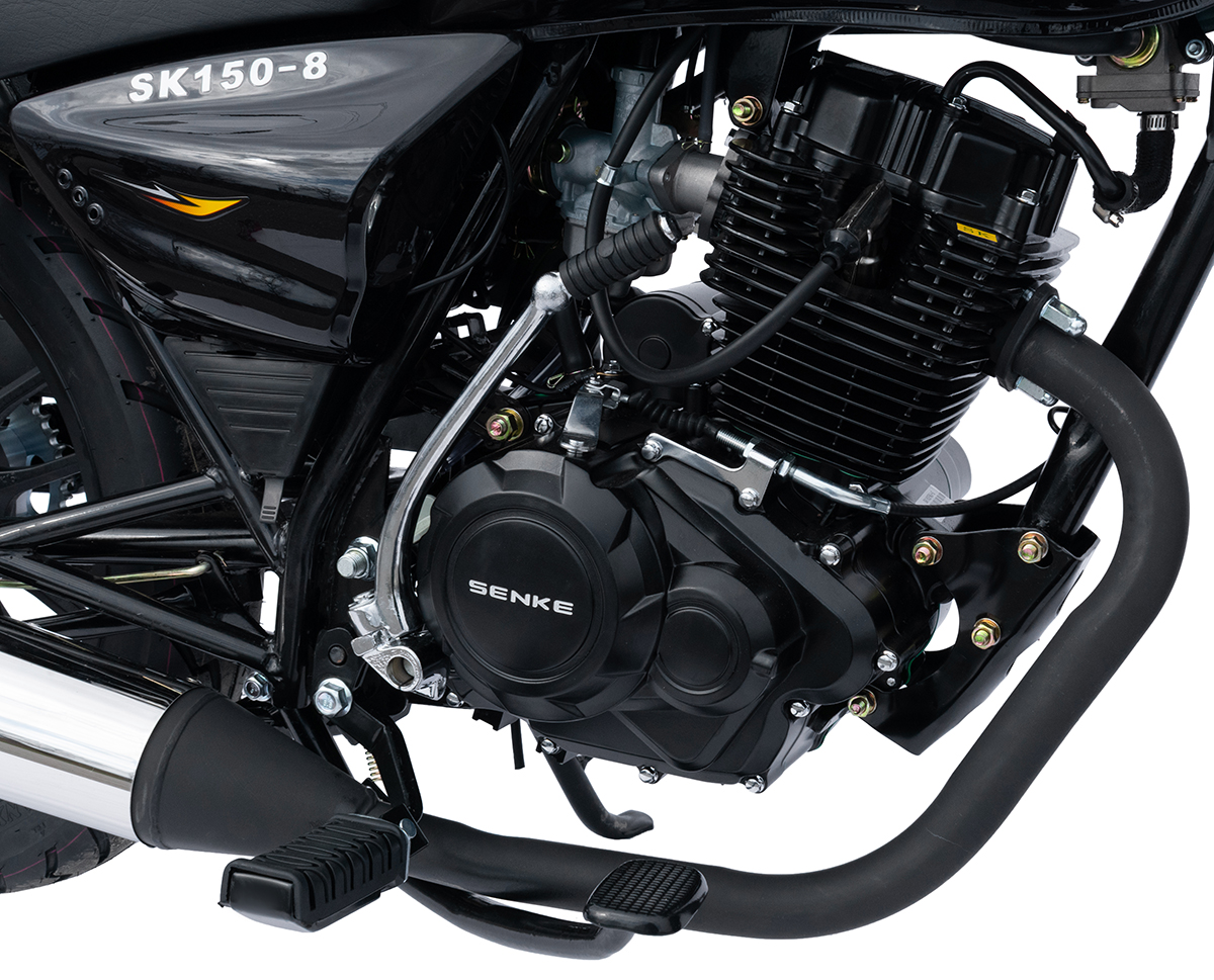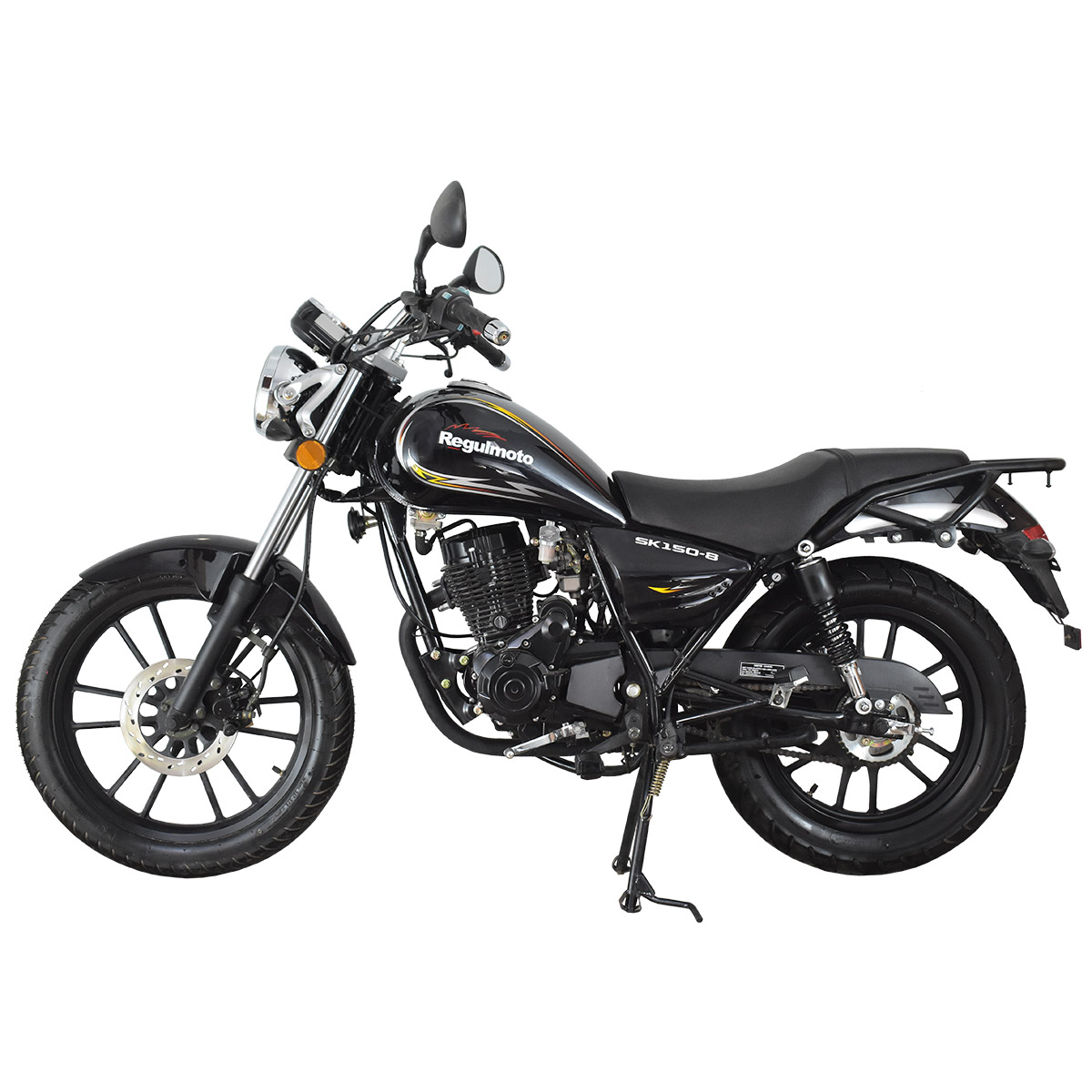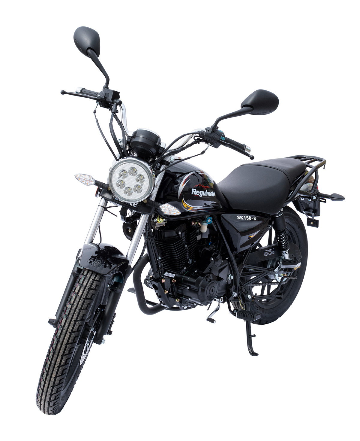 Мотоцикл Regulmoto SK 150-6 – классический «дорожник» с надежным и экономичным малокубатурным двигателем. Данная модель изготавливается на собственных мощностях крупного китайского производителя Senke, чья продукция пользуется заслуженной популярностью среди поклонников мототехники не только в Поднебесной, но и в странах Европы и Америки. Несмотря на классический внешний вид Regulmoto SK 150-8 отличается достаточно интересным и продуманным дизайном. В раме мотоцикла установлен одноцилиндровый 4-тактник с воздушным охлаждением с рабочим объемом в 149 см3. Двигатель можно запускать как кнопкой электростартера, так и при помощи традиционного кик-стартера. В целом байк выглядит лаконичным и современным – еще одной приметой актуальных трендов стали литые диски переднего 18-дюймового и заднего 16-дюймового колес. Также на переднем колесе установлен дисковый тормоз, хотя в ступице заднего колеса реализован проверенный многими десятилетиями вариант с тормозом барабанного типа. Характерная для «дорожников» подвеска представлена телескопической вилкой впереди и двумя амортизаторами сзади. Широкое комфортное сиденье и вместительный бак Regulmoto SK 150-8 недвусмысленно указывают на назначение мотоцикла, окончательную ясность вносят багажник, складывающиеся пассажирские подножки и наличие мощной центральной подножки. Безопасность эксплуатации на дорогах общего пользования обеспечивают обязательный комплект зеркал заднего вида и светового оборудования, включающего фару головного света, светодиодные поворотники и стоп-сигнал. Этот мотоцикл станет отличным выбором в качестве транспортного средства на каждый день и позволит своему обладателю с комфортом решать широкий круг повседневных задач. В описании указаны основные характеристики товара.