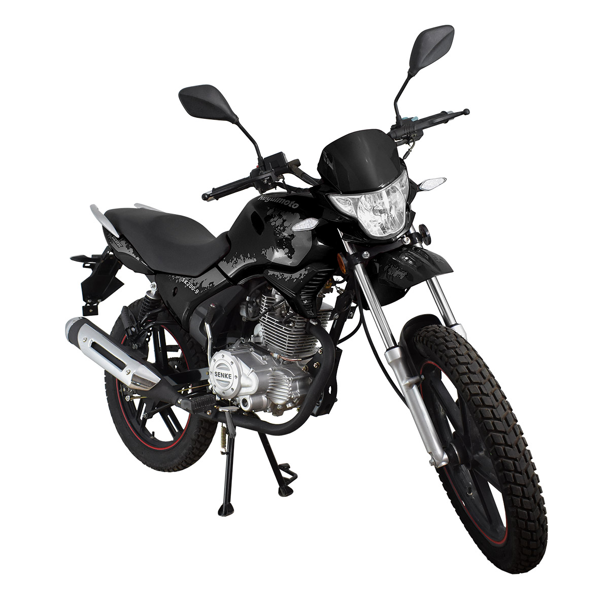 Компания «Regulmoto» представляет вниманию поклонников двухколесной мототехники мотоцикл Regulmoto SK200-9 – надежный и доступный для многих байк с широкими эксплуатационными возможностями. Мотоцикл Regulmoto SK200-9 – один из ярких представителей линейки малокубатурной мототехники известного азиатского производителя Senke. Мотоциклы производства одного из крупнейших китайских концернов пользуются заслуженным признанием экспертов и мотолюбителей в различных частях света, включая Европу и Америку. Продукцию Senke отличают не только одно из лучших на рынке соотношений достойного качества и демократичной цены, но и солидный эксплуатационный ресурс, высокая надежность, простое и недорогое сервисное обслуживание. В раме мотоцикла с 18-дюймовыми колесами на литых дисках установлен 4-тактный 200-«кубовый» двигатель с воздушным охлаждением, который способен развивать максимальную мощность в 13,6 лошадиных сил. Наличие у двигателя балансирного вала способствует снижению вибрации при работе мотора. 5-ступенчатая трансмиссия, электростартер, полноценная подвеска, представленная телескопической вилкой спереди и двумя амортизаторами и маятником сзади, цифровая приборная панель и емкий топливный бак – все это позволит получать максимум удовольствия от поездки. За безопасность использования мотоцикла Regulmoto SK200-9 отвечают надежная тормозная система (дисковый тормоз спереди и барабанный сзади), комплект светового оборудования и зеркал заднего вида. Regulmoto SK200-9 отличают современный внешний вид и обширные возможности практического использования: комплектация байка dual-sport резиной и увеличенный дорожный просвет позволяет эксплуатировать его как на асфальтированных дорогах, так и на проселках и тропах, включая легкое бездорожье. В описании указаны основные характеристики товара.