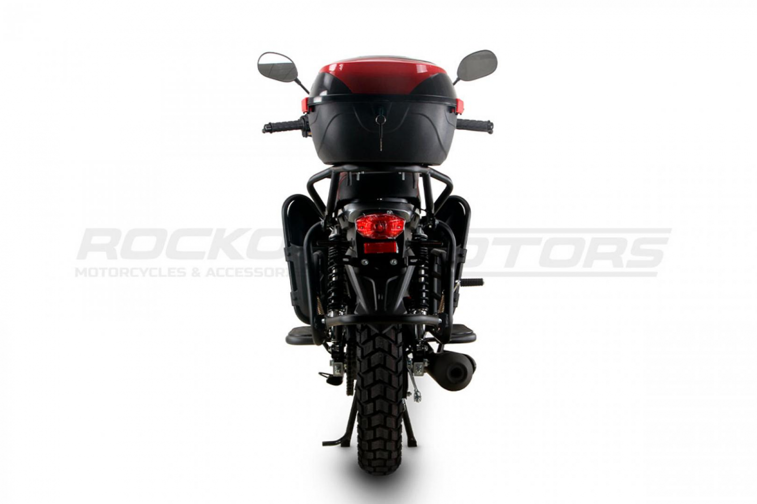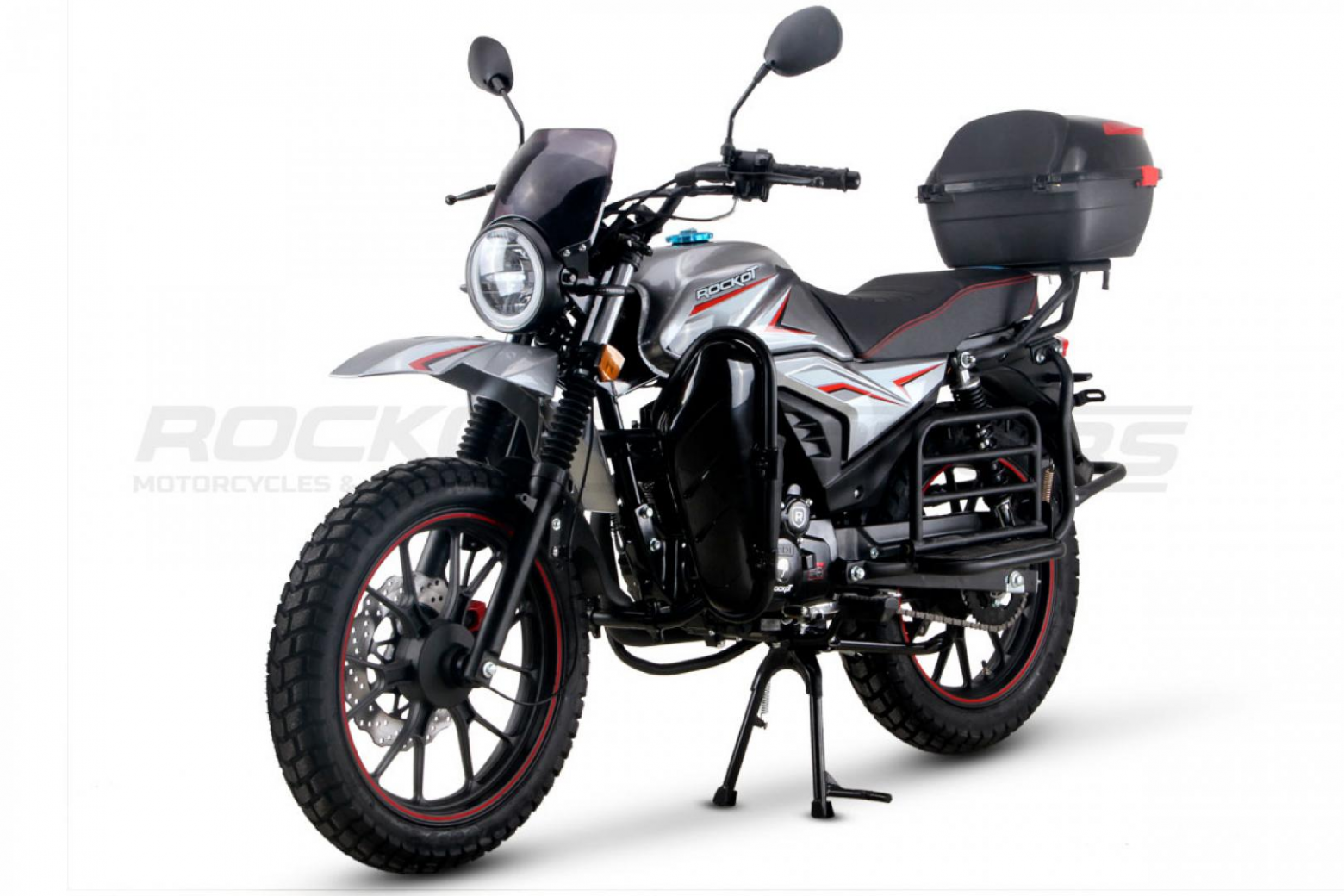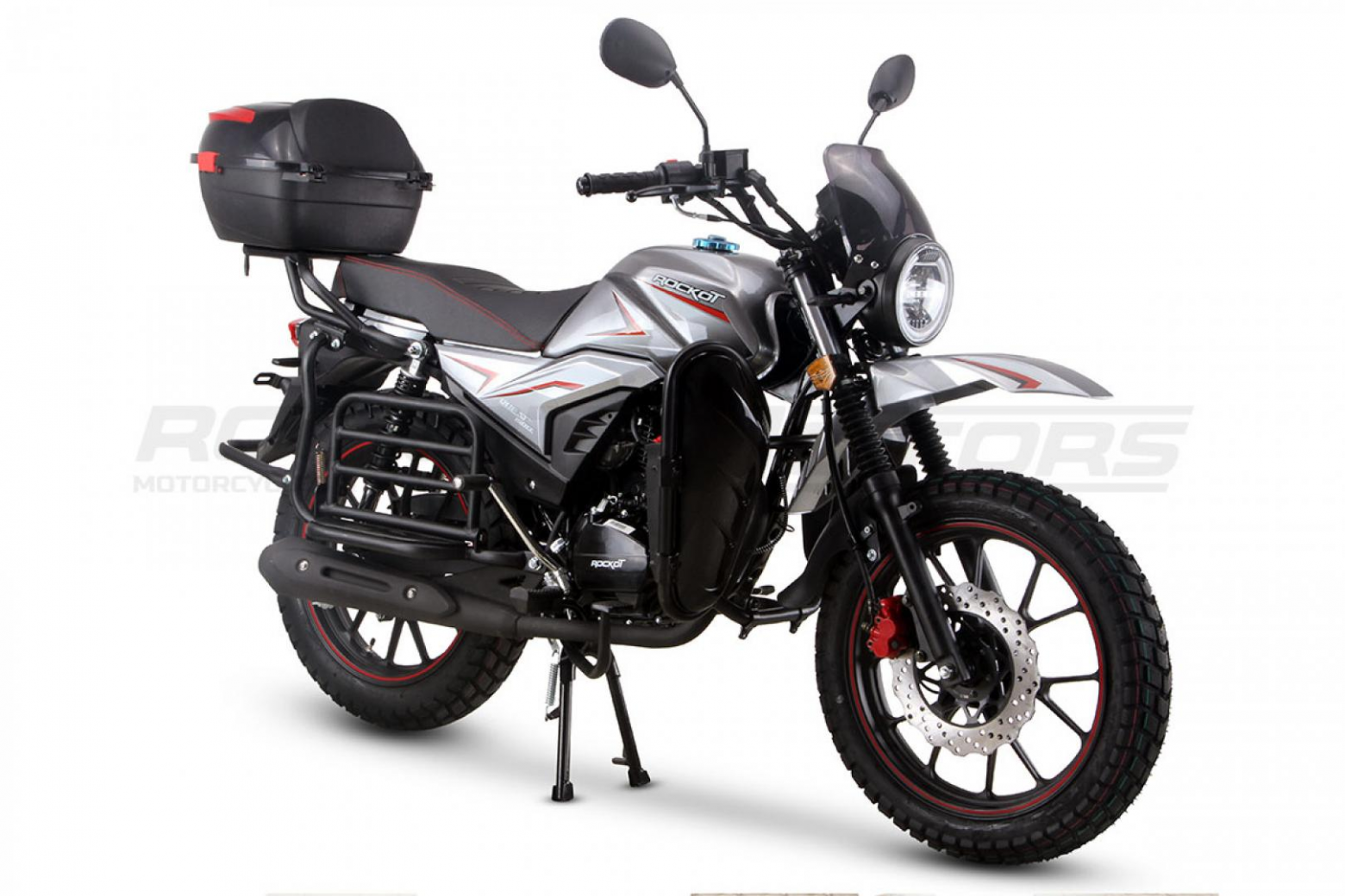 ROCKOT QUEST 150 - новый, дорожный мотоцикл от компании ROCKOT-MOTORS, с большим потенциалом на длительные поездки, независимо от типа дорожного покрытия. Благодаря своим компактным размерам, короткой колесной базе, мотоцикл отлично чувствует себя в городской среде с большим объемом дорожного трафика. Максимальная скорость ROCKOT QUEST 150 - до 92 км/ч на стандартных приводных звездах. Масса мотоцикла -126 килограмм, но при небольшой высоте по седлу в 820 мм и низкому центру тяжести, он ощущается достаточно легким. Мотоцикл имеет ЭПТС, оснащен цветной электронной панелью приборов, зеркалами, всей необходимой светотехникой, что позволяет законно передвигаться по дорогам общего пользования. Дизайн Мотоцикл построен в классическом исполнении, но имеет множество современных, технологичных решений. Все световые приборы - светодиодные и очень яркие. Передняя фара имеет круглую классическую форму, но стоит ее включить, как мотоцикл обретает совершенно другой вид. Цветовая гамма модели имеет три варианта окраски: бело-красный, черный и серый. Конечно же, бросается в глаза оснащение мотоцикла туристической багажной системой. На заднем багажнике установлен жесткий центральный кофр. Откидные боковые багажники, позволяют перевозить объемный груз, а также устанавливать боковые багажные сумки. Глядя на мотоцикл, складывается впечатление, что все его пространство использовано максимально практично. Даже в дугах безопасности встроены дополнительные багажные карманы. Топливная система В основе топливной системы ROCKOT QUEST 150 - большой топливный бак объемом 12 литров. В зависимости от условий эксплуатации и стиля езды, расход топлива варьируется в районе 3-3,5 литров на 100 километров. Это позволяет преодолевать большие расстояния на одном баке бензина. Используемый тип топлива - бензин АИ-92. Образует топливную смесь - карбюратор PZ27 с ускорительным насосом. Ускорительный насос исключает момент “провала” при резком открытии дроссельной заслонки. Тормозная система По канонам классического мотоциклостроения, ROCKOT QUEST 150 имеет комбинированную тормозную систему. Спереди установлен дисковый гидравлический тормоз, с двухпоршневым суппортом, яркого красного цвета. Задний тормоз - механический, барабанный. Кому подойдет ROCKOT QUEST 150 Мотоцикл будет очень полезен новичкам. Его небольшие габаритные размеры, низкий центр тяжести, малая высота по седлу - позволяют быстро освоить технику управления мотоциклом как в условиях города, так и бездорожья. С практичной точки зрения, мотоцикл понравится любителям выезжать на отдых за город. Отличная туристическая подготовка, позволит перевозить все, что Вам может потребоваться во время отдыха. Благодаря заложенной надежности в конструкцию двигателя и мотоцикла - ROCKOT QUEST 150 оценит старшее поколение, для кого требуется простая и надежная техника. В описании указаны основные характеристики товара.