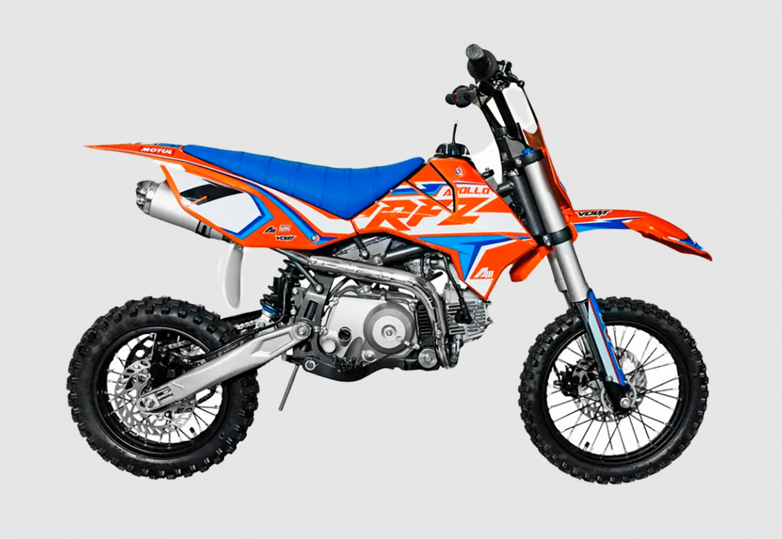 Apollo RFZ START 110E - надёжный питбайк, разработанный инженерами Apollo во Франции. Модели RXF Open оснащены вилочными подвесками V-one Volt Suspension длиной 810 мм. Амортизатор V-One последнего поколения Volt Suspensions, был специально разработан, чтобы позволить раме извлечь выгоду из лучшего сцепления при использовании на бездорожье! Новый фильтрбокс устанавливается на всю линейку RXF. Особенностью этого фильтрбокса является съемный выдвижной ящик, требуется меньше 30 секунд, чтобы сменить воздушный фильтр! RXF Open оснащен тормозными дисками размером 220 мм спереди и 190 мм сзади для достижения максимально эффективного торможения. Модель RFZ теперь стандартно оснащены цепями 428 вместо 420 у моделей конкурентов. Модели RXF Open оснащены надежным 4 тактным одноцилиндровым двигателем YX 110 кубиков и комплектуются колесами 12/10. У нас Вы можете купить этот питбайк с бесплатной доставкой по РФ и гарантией до года. Также его можно приобрести в рассрочку или в кредит. В описании указаны основные характеристики товара.