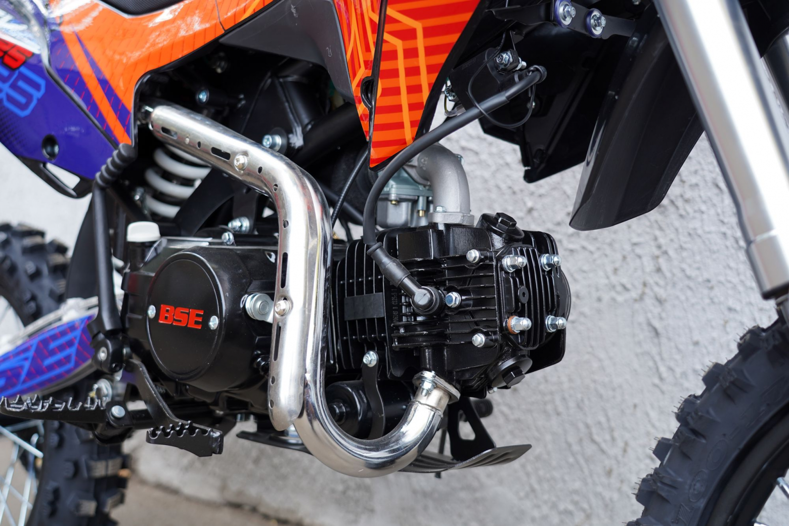 Если вы находитесь в поисках безопасного и маневренного мотоцикла для езды по бездорожью, BSE EX 17/14 - отличный выбор. Произведенный китайской компанией BSE, этот питбайк оснащается 49-кубовым 4-тактным мотором, развивающим максимальную мощность в 10 лошадиных сил при 7500 оборотах в минуту. Двигатель Zongshen ZS154FMI-2 славится высокой степенью надежности и эффективностью в тяжелых условиях бездорожья. Стальная рама питбайка обеспечивает прочность и устойчивость, а компактные размеры позволяют идеально маневрировать на узких тропах. Передняя перевернутая телескопическая подвеска и регулируемый по преднатягу задний моноамортизатор обеспечивают плавность хода и управляемость на пересеченной местности. Гидравлическая тормозная система с передним диском диаметром 220 мм и задним диском диаметром 190 мм обеспечивает эффективное и надежное торможение. Компактные размеры (1700 мм x 760 мм x 1090 мм) способствуют отличной маневренности, а дорожный просвет 290 мм позволяет мотоциклу легко преодолевать различные препятствия. Коробка передач с четырьмя скоростями (N-1-2-3-4) в сочетании с многодисковым сцеплением в масляной ванне гарантирует плавное переключение передач и стабильную работу в любых условиях. Наличие как электростартера, так и кикстартера обеспечивает удобство и надежность запуска двигателя. BSE EX 17/14 оснащен 17-дюймовым передним и 14-дюймовым задним колесами с шинами 60/100-17 и 90/100-14 соответственно, что дает отличное сцепление и устойчивость на грунтовых дорогах. Легкий вес байка (всего 75 кг в сухом состоянии) улучшает его маневренность и отзывчивость. В описании указаны основные характеристики товара.