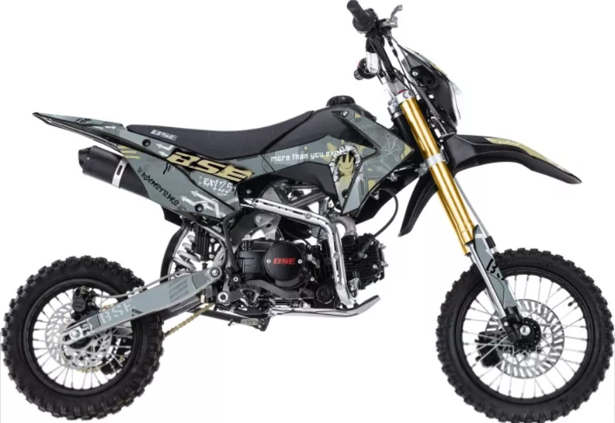 BSE EX 125e – это питбайк, созданный компанией BSE, предоставляющий отличные характеристики для любителей активного мотоциклетного опыта. С массой всего 75 кг и мощностью двигателя 10 л. с., этот бензиновый 1-цилиндровый 4-х тактный мотоцикл с легкостью подчеркивает свою маневренность и эффективность. Модель оснащена двигателем Zonsgshen ZS154FMI-2 объемом 125 см3, работающим по принципу 4-х тактного цикла, что обеспечивает плавное и экономичное движение. Система охлаждения воздушная, что способствует эффективному теплообмену в самых разнообразных условиях эксплуатации. BSE EX 125e обладает уникальной комбинацией передних и задних шин – 17" и 14" соответственно, что обеспечивает отличное сцепление с дорогой и устойчивость на разнообразных поверхностях. Система запуска включает кикстартер и электростартер, обеспечивая удобство использования в различных ситуациях. Телескопическая передняя подвеска и задний моноамортизатор гарантируют плавное и комфортное вождение на неровных дорогах. Дисковые тормоза спереди и сзади обеспечивают высокую степень безопасности и эффективный контроль при торможении. С трансмиссией типа механическая и системой подачи топлива через карбюратор, питбайк BSE EX 125e предоставляет надежность и простоту в управлении. Рама из стали обеспечивает прочность и долгий срок службы мотоцикла. Фары наличие питбайка делают его подходящим для использования в различных условиях освещения. Объем топливного бака составляет 3.5 литра, что позволяет ему преодолевать длинные расстояния на одном баке. Размеры в упаковке (142 х 43 х 64 см) и высота седла (860 мм) делают его компактным и удобным для хранения. Марка топлива – АИ-92, что является распространенным и доступным вариантом. В описании указаны основные характеристики товара.