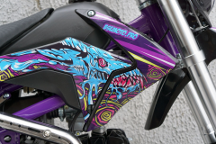 Питбайк BSE MX125 17/14 Purple Dragon обладает всеми качествами спортивного мини-мотоцикла, богатой комплектацией и большим выбором цветов. Питбайк BSE MX 125 - отличный выбор для тех, кто делает первые шаги в мире спорта, кросса и офф-роада. В оригинальной, усиленной, хромомолибденовой раме BSE, устанавливается мощный 4-х тактный двигатель Zonghshen 125 куб см с воздушным охлаждением и 4-ступенчатой коробкой, в рабочем тандеме с спортивным карбюратором Jingke PZ26 способный развивать мощность 10 лошадиных сил. Удлиненная колесная база и превосходная подвеска увеличивает курсовую устойчивость питбайка и позволяет райдеру с большим комфортом управлять им на прямых участках трассы и с легкостью проходить "острые" повороты и подъёмы и любые неровности. Мощная тормозная система HSK Racing c армированными тормозными шлангами. Подвеска питбайка базируется на традиционном выборе комплектующих: телескопическая вилка-«перевертыш» впереди и моноамортизатор сзади. Настройки отбоя/сжатия имеются только у заднего амортизатора, работа вилки корректируется заменой масла. MX 125 укомплектован резиной с увеличенным грунтозацепом, фильтрбоксом, короткоходной ручой газа. В описании указаны основные характеристики товара.