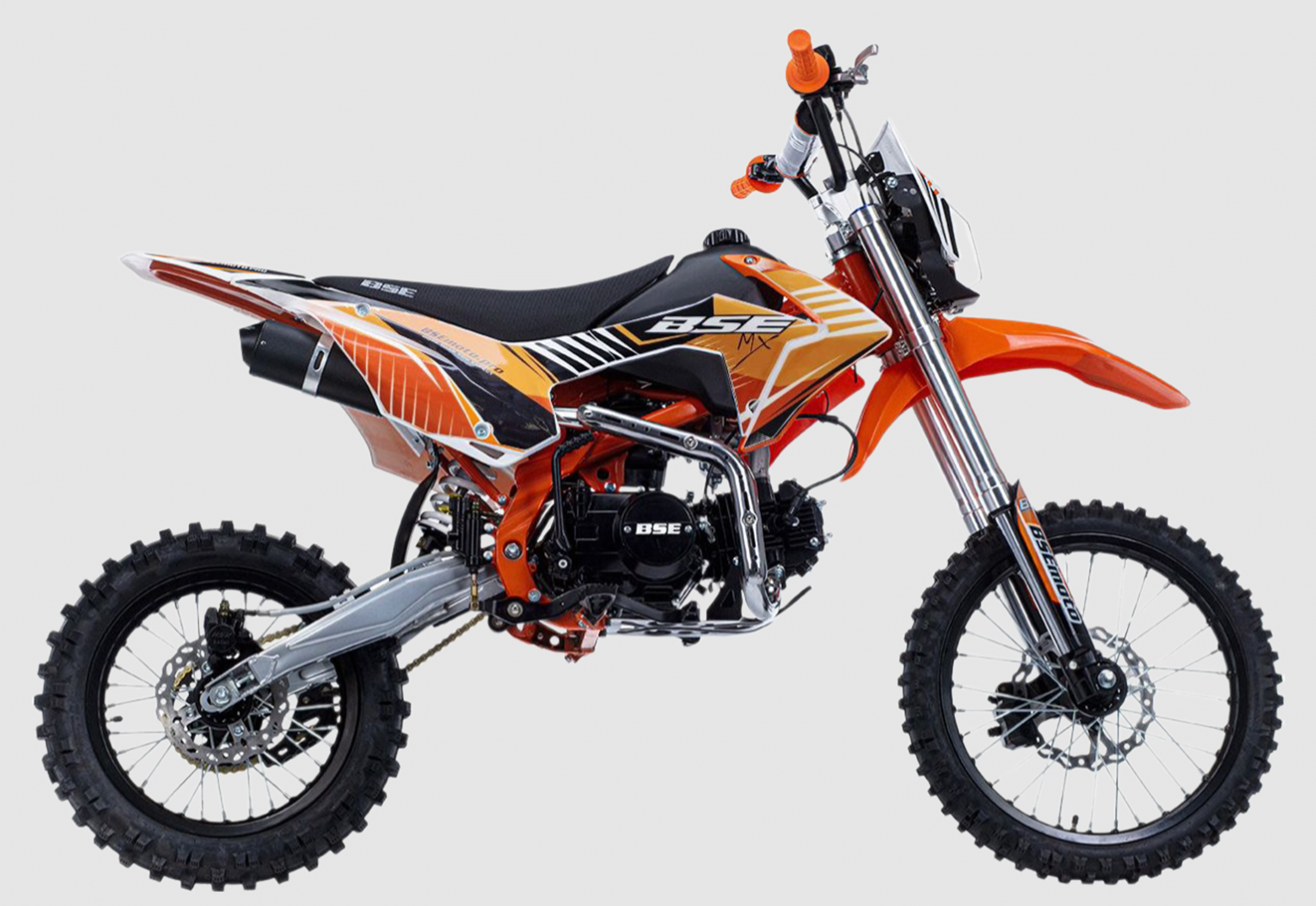 Мощный, надёжный и сбалансированный спортивный питбайк. BSE MX 125 обладает всеми качествами спортивного мини-мотоцикла, богатой комплектацией и большим выбором цветов. Питбайк BSE MX 125 - отличный выбор для тех, кто делает первые шаги в мире спорта, кросса и офф-роада. В оригинальной, усиленной, хромомолибденовой раме BSE, устанавливается мощный 4-х тактный двигатель Zonghshen 125 куб см с воздушным охлаждением и 4-ступенчатой коробкой, в рабочем тандеме с спортивным карбюратором Jingke PZ 26 способный развивать мощность 10 лошадиных сил. Удлиненная колесная база и превосходная подвеска увеличивает курсовую устойчивость питбайка и позволяет райдеру с большим комфортом управлять им на прямых участках трассы и с легкостью проходить "острые" повороты и подъёмы и любые неровности. Мощная тормозная система HSK Racing c армированными тормозными шлангами. Подвеска питбайка базируется на традиционном выборе комплектующих: телескопическая вилка-«перевертыш» впереди и моноамортизатор сзади. Настройки отбоя/сжатия имеются только у заднего амортизатора, работа вилки корректируется заменой масла. MX 125 укомплектован резиной с увеличенным грунтозацепом, фильтрбоксом, короткоходной ручой газа. В описании указаны основные характеристики товара.