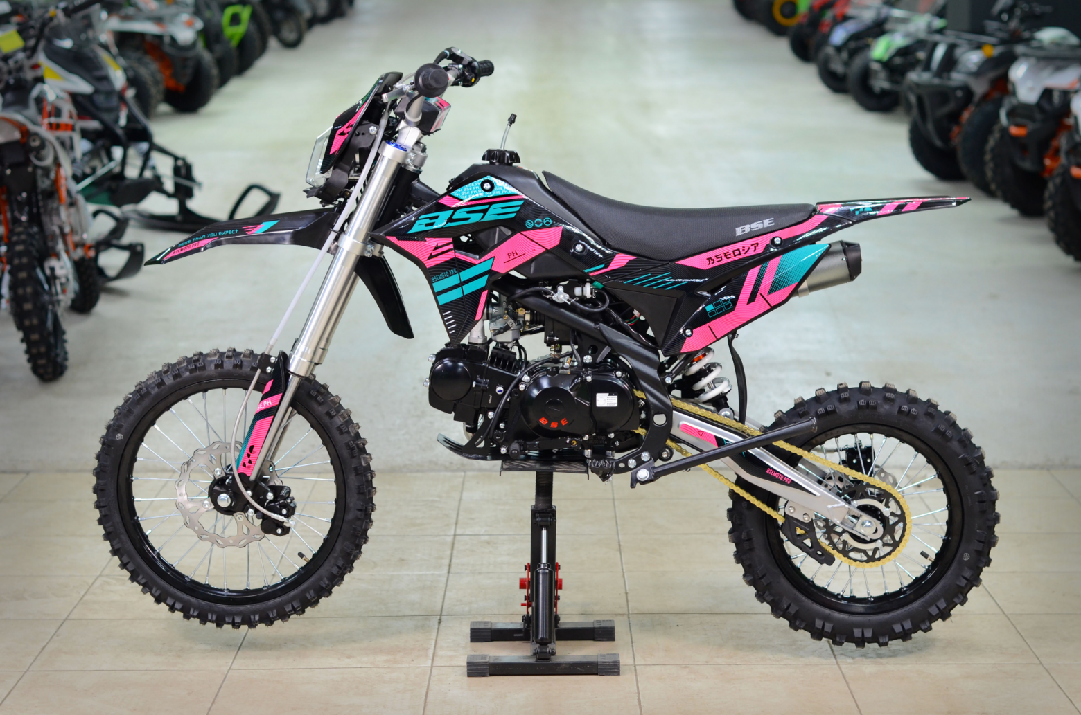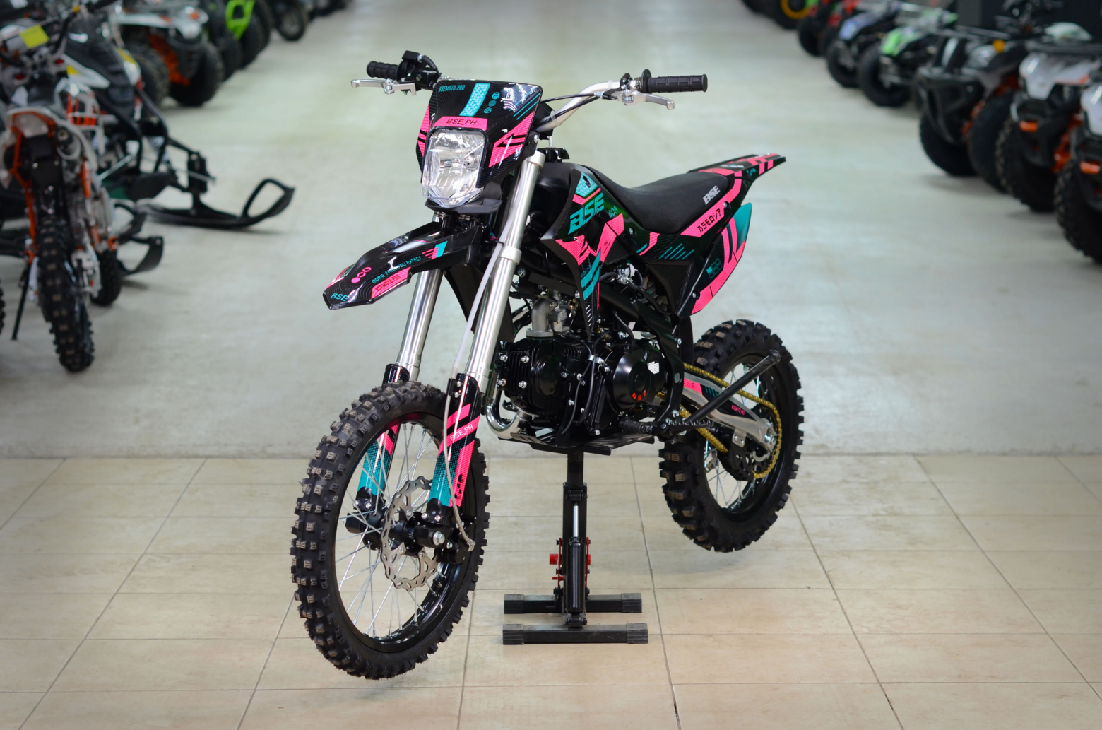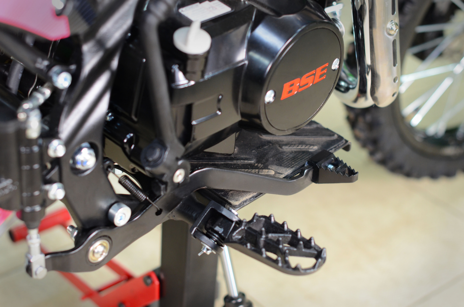 Питбайк BSE PH125 на колесах 17/14 дюймов – один из самых популярных, надежных и продаваемых питбайков 125 куб см среди китайских производителей! Этот классический питбайк объёмом 125 см3 обладает рядом модификаций и полезных усовершенствований, которые дополняют его функционал и отличают от конкурентов. PH125 оснащен колесами классическим для питбайка размером колес 17/14. Основа PH125 - рама из хромомолибденовой стали повышенной жесткости с литыми усилителями - фирменный знак качества завода BOSUER! Cиловая установка питбайка – надежный, тяговитый и мощный 4-тактный двигатель Zonghshen 125 куб см с воздушным охлаждением и мощностью 10 лс. Питает мотор карбюратор Jingke PZ 26. Питбайк оснащен 4-ступенчатой механической трансмиссией. Запуск мотора осуществляется при помощи электростартера или кик-стартера. Подвески с большими ходами: передняя - телескопическая вилка перевёрнуто типа, задняя- моноамортизатор. "Злая" резина, Мощная тормозная система HSK Racing, японские колесные подшипники NTN, усиленная цепь 428 Gold, защита мотора - питбайк полностью укомплектован всем необходимым для покатушек и гонок. В описании указаны основные характеристики товара.