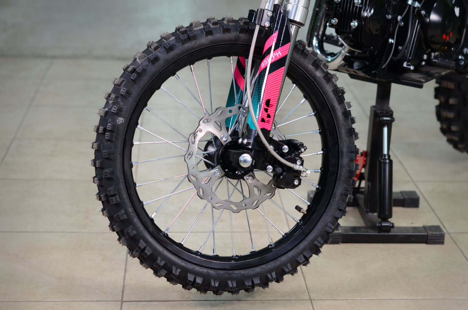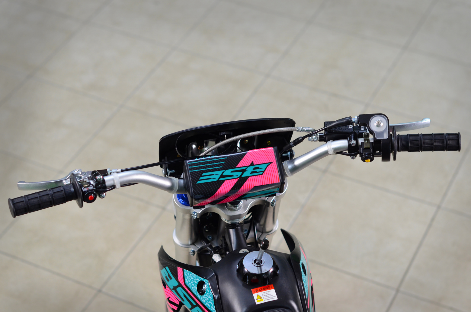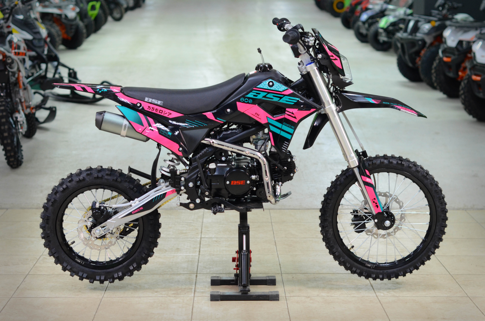 Питбайк BSE PH125 на колесах 17/14 дюймов – один из самых популярных, надежных и продаваемых питбайков 125 куб см среди китайских производителей! Этот классический питбайк объёмом 125 см3 обладает рядом модификаций и полезных усовершенствований, которые дополняют его функционал и отличают от конкурентов. PH125 оснащен колесами классическим для питбайка размером колес 17/14. Основа PH125 - рама из хромомолибденовой стали повышенной жесткости с литыми усилителями - фирменный знак качества завода BOSUER! Cиловая установка питбайка – надежный, тяговитый и мощный 4-тактный двигатель Zonghshen 125 куб см с воздушным охлаждением и мощностью 10 лс. Питает мотор карбюратор Jingke PZ 26. Питбайк оснащен 4-ступенчатой механической трансмиссией. Запуск мотора осуществляется при помощи электростартера или кик-стартера. Подвески с большими ходами: передняя - телескопическая вилка перевёрнуто типа, задняя- моноамортизатор. "Злая" резина, Мощная тормозная система HSK Racing, японские колесные подшипники NTN, усиленная цепь 428 Gold, защита мотора - питбайк полностью укомплектован всем необходимым для покатушек и гонок. В описании указаны основные характеристики товара.