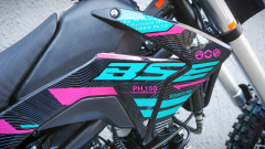Питбайк BSE PH 150 19/16 AK47 Blue (015). Основа PH150 - рама из хромомолибденовой стали повышенной жесткости с литыми усилителями - фирменный знак качества завода BOSUER! Cиловая установка питбайка - надежный и тяговитый 4-тактным двигателем YX объёмом 150 см3 с воздушным охлаждением. Максимальная мощность – внушительные 15 лс. Питает мотор карбюратор MIKUNI VM22. Питбайк оснащен 4-ступенчатой механической трансмиссией. Запуск мотора осуществляется при помощи электростартера или кик-стартера. Подвески с большими ходами: передняя - телескопическая вилка перевёрнуто типа, задняя- моноамортизатор. LED фара головного света, "злая" резина, vощная тормозная система HSK Racing, японские колесные подшипники NTN, защита мотора, руль ProTaper - питбайк полностью укомплектован всем необходимым для покатушек и гонок. PH150 – профессиональный выбор самого продвинутого "питбайкера". В описании указаны основные характеристики товара.