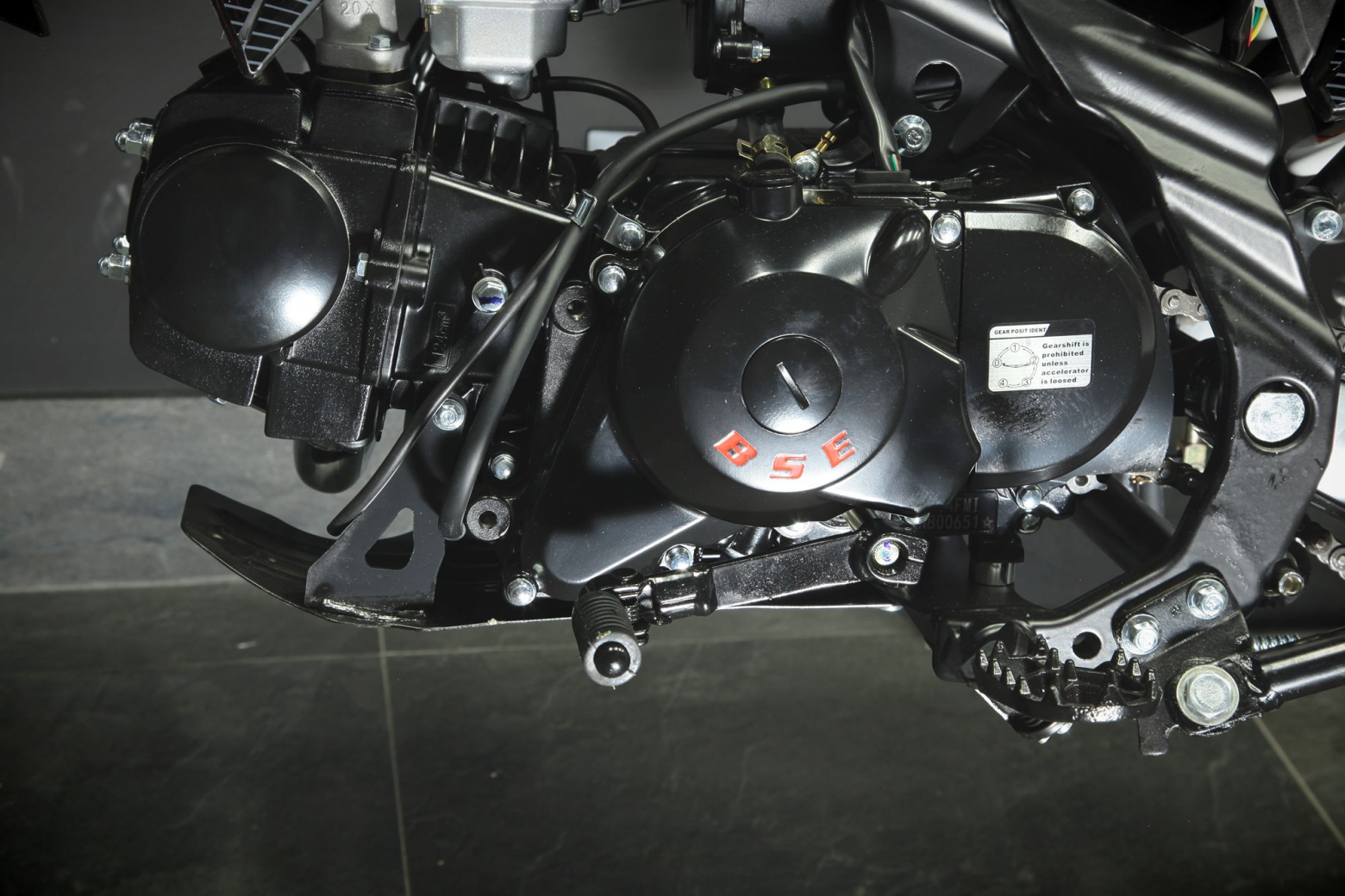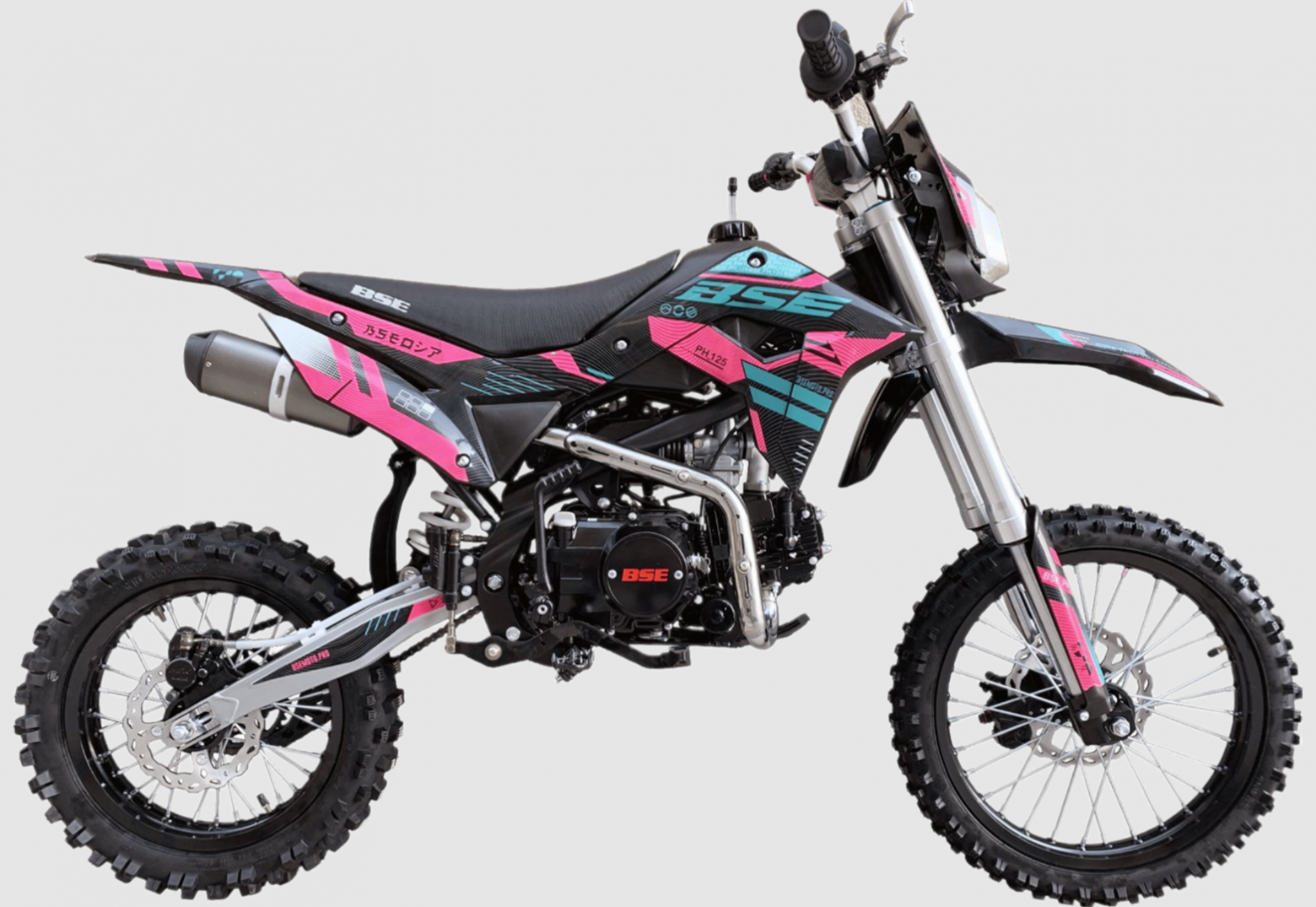 Питбайк BSE PH125 на колесах 17/14 дюймов – один из самых популярных, надежных и продаваемых питбайков 125 куб см среди китайских производителей! Этот классический питбайк объёмом 125 см3 обладает рядом модификаций и полезных усовершенствований, которые дополняют его функционал и отличают от конкурентов. PH125 оснащен колесами классическим для питбайка размером колес 17/14. Основа PH125 - рама из хромомолибденовой стали повышенной жесткости с литыми усилителями - фирменный знак качества завода BOSUER! Cиловая установка питбайка – надежный, тяговитый и мощный 4-тактный двигатель Zonghshen 125 куб см с воздушным охлаждением и мощностью 10 лс. Питает мотор карбюратор Jingke PZ 26. Питбайк оснащен 4-ступенчатой механической трансмиссией. Запуск мотора осуществляется при помощи электростартера или кик-стартера. Подвески с большими ходами: передняя - телескопическая вилка перевёрнуто типа, задняя- моноамортизатор. "Злая" резина, Мощная тормозная система HSK Racing, японские колесные подшипники NTN, усиленная цепь 428 Gold, защита мотора - питбайк полностью укомплектован всем необходимым для покатушек и гонок. В описании указаны основные характеристики товара.