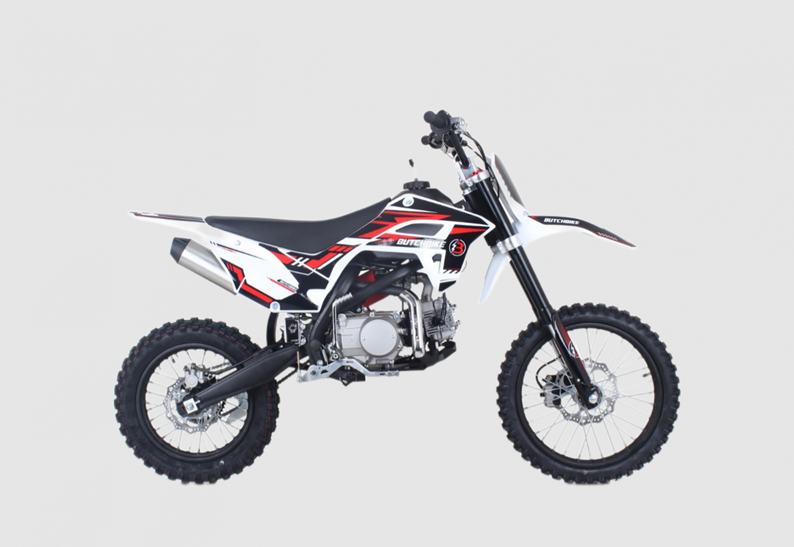 Butchbike MX1 125 не только мощный, но и удобный в использовании. По сравнению с другими питбайками, Butchbike MX1 имеет достаточно удобную посадку, которая идеально подойдет для людей с ротом от 155см до 188см. Рама изготовлена из стали, форма "клетка", что обеспечивает ей долговечность и устойчивость к длительным нагрузкам. Кроме того, приемная труба глушителя проходит во внутренней части рамы, что позволит избежать ожогов и делает вашу посадку на питбайке более комфортной. Еще одним преимуществом Butchbike MX1 125 является его экономичность. Благодаря установленному карбюратору NIBBI PE19 с 19мм диффузором, Вы получите небольшой расход топлива, что позволит долгое время наслаждаться поездкой и не задумываться о заправке. Подвеска стандартная, без излишеств. Вам не придется заморачиваться с настройками, а сразу получить комфорт и безопасное управление питбайка на бездорожье. Установленные пружины на вес райдера 60-70кг. Отметим, что вилка имеет широкие траверсы и при переделки питбайка для МиниМотард либо СТАНТ (stuntriding), в нее встанут широкие литые диски с резиной 120/70". Установленный руль имеет средний подъем, что идеально подойдет для людей с невысоким ростом. Установлены очень удобные откидные рычаги сцепления и тормоза, которые позволят добиться облегченного выжима. Рычаги складываются при падении, минимизируя риск получения травмы от ручки, что позволяет сохранять ваши руки целыми. В описании указаны основные характеристики товара.