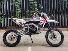 Питбайк Full Crew FC125e отлично подходит для пробующих мотоспорт – резвый мотор на 125 кубов с 9 лошадиными силами прекрасно работает с механической коробкой. Охлаждение воздушное – простая конструкция облегчает ремонт и удешевляет обслуживание. Для начинающих эта модель особенно интересна еще и из-за цены – можно основам научиться на нем с перспективой пересесть в дальнейшем на что-то более серьезное. Рама стальная усиленная, конструкция обеспечивает высокую удобную посадку, а подвеска (передняя перевернутая вилка и задний моноамортизатор) обеспечивает мягкое движение по кочкам, оврагам, деревьям и прочим всевозможным преградам на дикой трассе. Гидравлические тормоза работают надежно и четко. Из дополнительных приятных «плюшек»: - рычаги сцепления и тормоза откидываются;