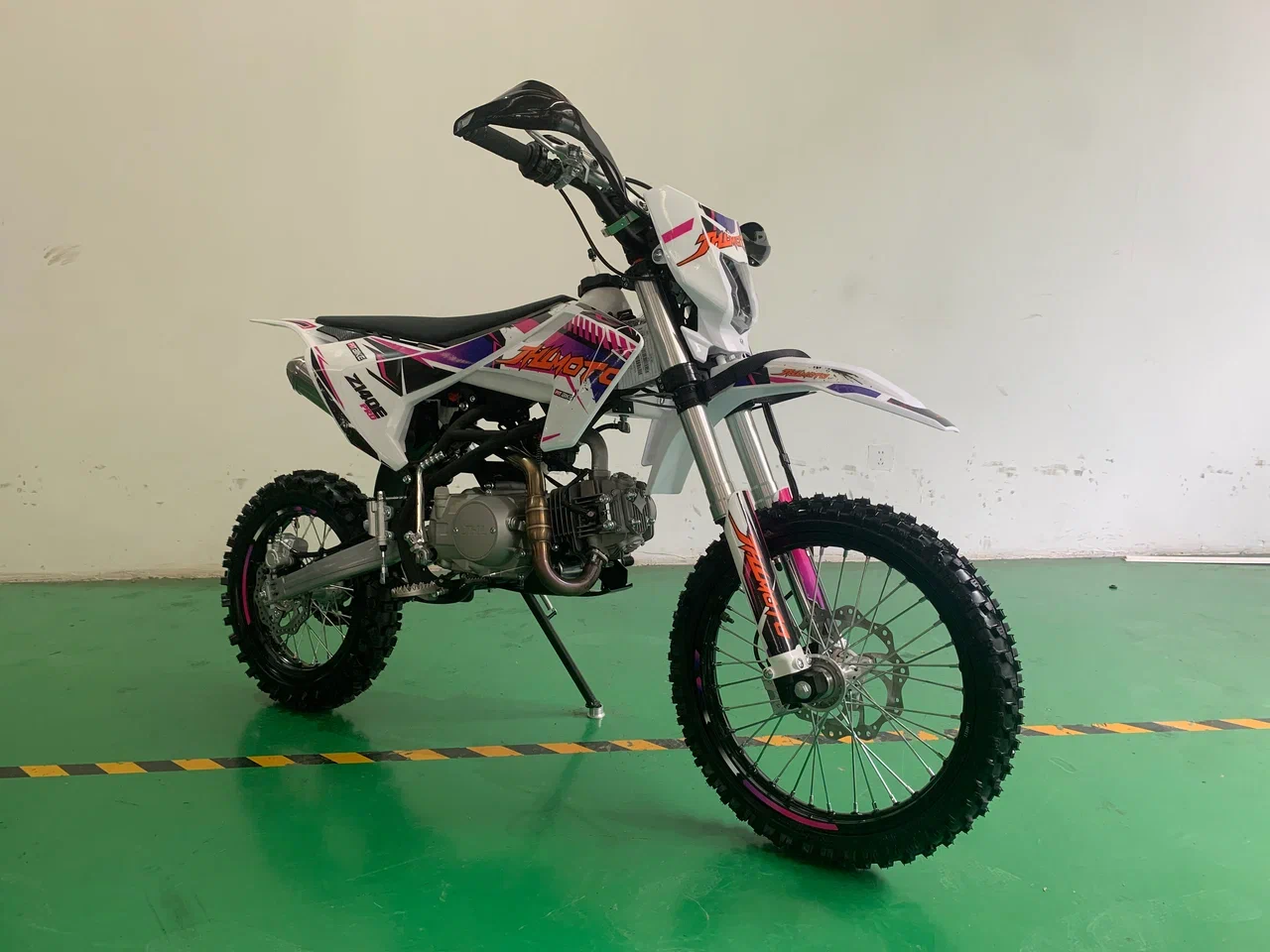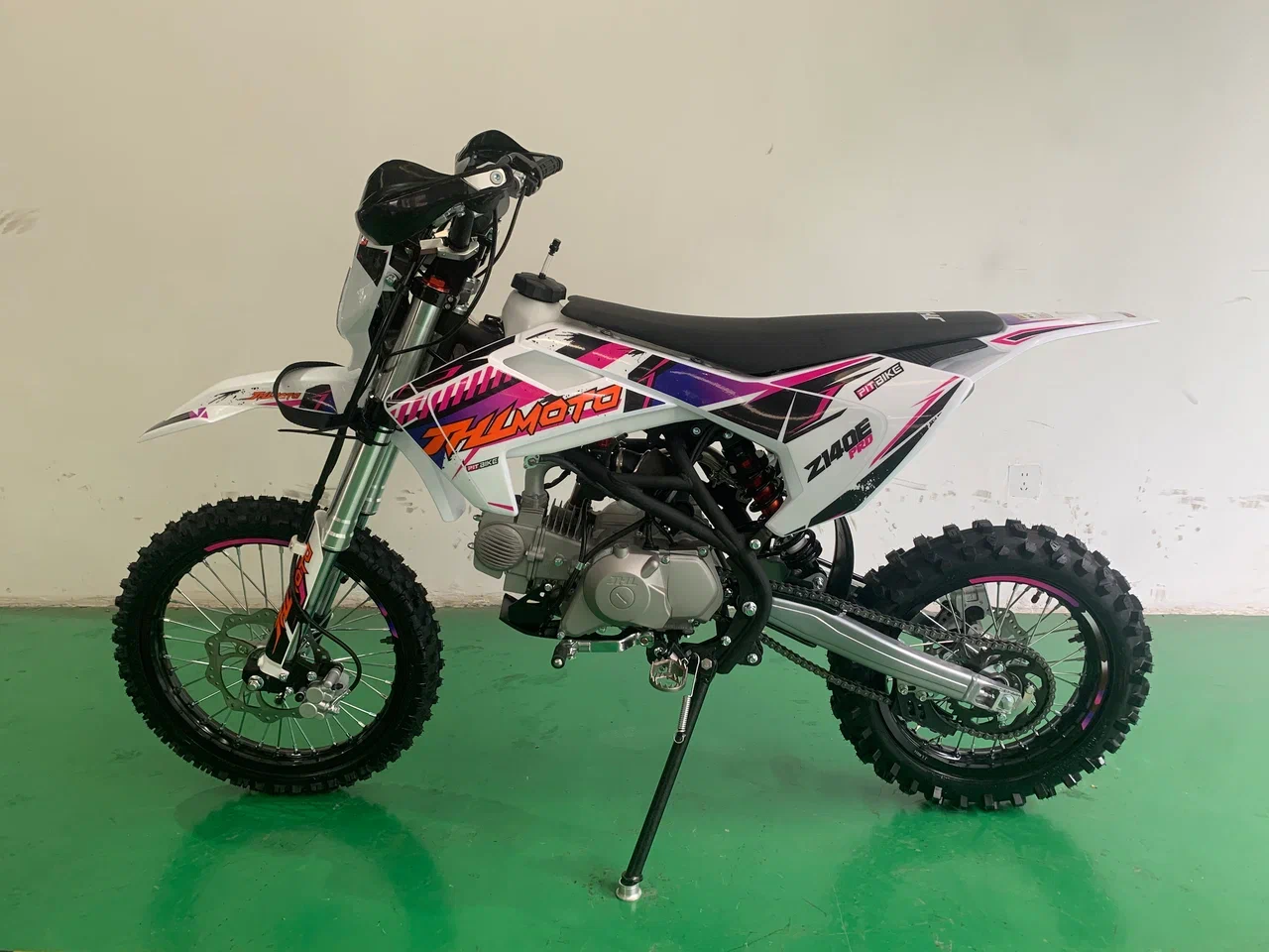 Один из самых быстрых и маневренных питбайков JHL Z140E Pro производится из качественных материалов, отличающихся прочностью и надежностью. Этот китайский кроссовый мотоцикл пользуется спросом у профессиональных мотогонщиков. Но также его за легкий вес и комфортное управление модель выбирают и любители. Основные особенности китайского кроссового питбайка Z140E Pro Мотоцикл спортивный JHL Z140E Pro обладает оптимальными техническими характеристиками, а также тщательно продуманным дизайном, делающим его использование удобным и сравнительно несложным. Его четырехтактный бензиновый двигатель способен быстро развивать скорость и двигаться по бездорожью до 85 км в час. Основными причинами, почему стоит купить питбайк именно этой модели, являются следующие: мощность в чуть больше одиннадцати конских сил - питбайк вытягивает там, где аналоги могут уже сдаться; прочная стальная рама, которая не боится бездорожья, падений и механических ударов; самая современная система торможения, за счет чего водитель более защищен от непредвиденных ситуаций; небольшой вес и размеры, что позволяет не только использовать его для езды, но и удобно транспортировать к месту мотогонок или буксировать при поломке, хотя китайский мотоцикл редко выходит из строя без серьезных причин; выгодная стоимость у нас, поэтому не нужно искать, где можно купить питбайк недорого. В описании указаны основные характеристики товара.
