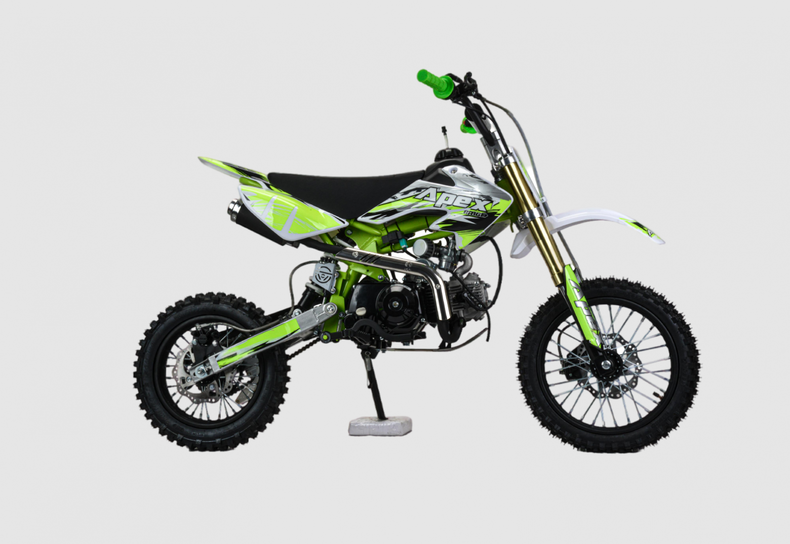 Мотоцикл Кросс APEX10 Motoland достаточно легкий и комфортный мотоцикл, ориентированный на подростков. Данная модель не требует каких-либо профессиональных навыков вождения. Мотоцикл оборудован гидравлическими дисковыми тормозами. Двигатель четырехтактный объемом в 110 см3. В комплектацию входит электростартер и автоматическая трансмиссия с 1 скоростью. Легкий вес, простое управление, небольшие колеса — то что надо для первого мотоцикла.Идеален для прогулок. Данная модель не требует регистрации, в связи с тем, что не ориентирован на дороги общего пользования. У нас Вы можете купить этот питбайк с бесплатной доставкой по РФ и гарантией до года. Также его можно приобрести в рассрочку или в кредит. В описании указаны основные характеристики товара.