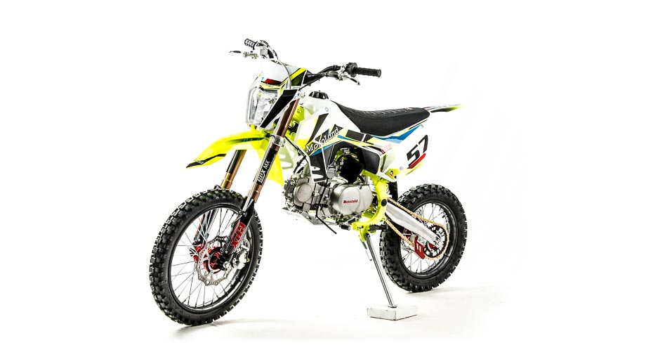 Представляем Вам новинку 2020 года питбайк Motoland MX125E Крепкая рама, периметрального типа которая дает мотоциклу отличную жесткость, которая в свою очередь дает лучший контроль в поворотах за счет лучшего сопротивления к нагрузкам на скручивание. Одно из самых лучших изобретений в этих питбайках, это фильтр-бокс. Он предотвращает попадание мелких частиц и влаги в карбюратор, что в свою очередь продлевает ресурс поршневой группы и дает уверенность в каждой поездке. Все электрические соединения которые отвечают за искра-образование сделаны на водонепроницаемых разъемах, что дает уверенность в том что попадание воды на мотоцикл не отразится на его работе. В описании указаны основные характеристики товара.