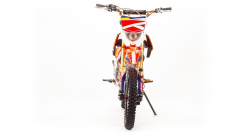 Недорогой надёжный питбайк WRX125 идеален для поездок по грунтовым дорогам и бездорожью. Хорошо чувствует себя на мягком и среднем грунте, разгоняется до 90 км/ч. Оснащён CNC траверсами, фарой, алюминиевыми ободами, весит всего 70 кг. Питбайк прост в управлении и не требует специального ухода, подойдёт как новичкам, так и любителям мотокросса. У кроссового мотоцикла WRX125 отличный узнаваемый дизайн. Конструкция подчёркивает неуступчивый спортивный характер питбайка, который не остановится ни перед одним препятствием. Пластик комбинированный, прочный, не ломается при сгибании. Передняя подвеска — телескопическая нерегулируемая вилка перевёрнутого типа, которая отлично подходит для преодоления ям, ухабов и других неровностей плохих дорог или их отсутствия. Задняя подвеска маятниковая с моноамортизатором. Руль 22 мм с высоким подъёмом и перекладиной удобен для мотоциклистов разного роста. Питбайк весит всего 70 кг, при этом выдерживает вес до 150 кг. Оснащён CNC траверсами, рама полудуплексная стальная, мотоцепь качественная. Размер заднего колеса — 14 дюймов (350 мм), переднего — 17 дюйм (430 мм). Тормоза дисковые, передний тормозной суппорт двухпоршневой, задний — однопоршневой. Питбайк оснащён карбюратором с фильтром нулевого сопротивления и одноцилиндровым четырёхтактным двигателем с воздушным охлаждением. Надёжный мотор мощностью 9 л. с. и объемом 125 см³ разгоняет кроссовый мотоцикл WRX125 до 90 км/ч. Коробка передач механическая, четырёхступенчатая. Система зажигания электронная (CDI), для запуска двигателя можно использовать кикстартер. Покрышки с шипами и высоким грунтозацепом идеальны для бездорожья. Мощность мотора и небольшой вес питбайка позволяют ему преодолевать значительные препятствия и непролазную грязь, хорошо заходить в подъёмы. Для поездок при низкой видимости и в ночное время суток питбайк оснащён фарой. Питбайк 125 относится к недорогим моделям, которые при должной эксплуатации работают без сбоев и капризов. Кросс неприхотлив в обслуживании, не занимает много места в гараже. При необходимости в нём легко сменить любую повреждённую деталь. У нас Вы можете купить этот питбайк с бесплатной доставкой по РФ и гарантией до года. Также его можно приобрести в рассрочку или в кредит. В описании указаны основные характеристики товара.