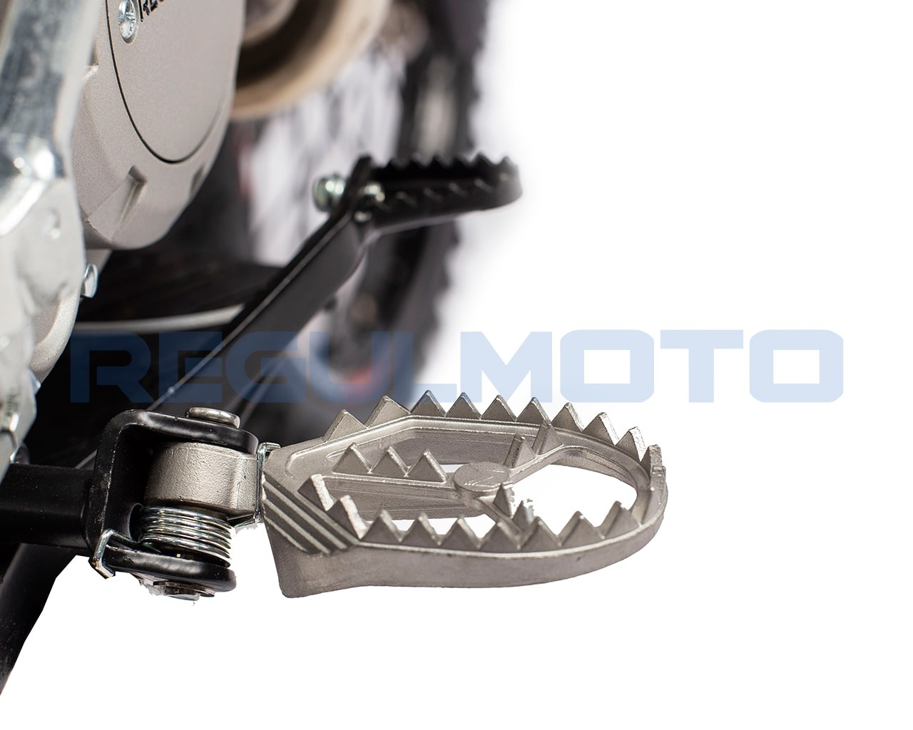 Питбайк Regulmoto SEVEN MEDALIST PRO 19/16 - популярная модель питбайка, которую отличают взвешенный подбор комплектующих и широкий эксплуатационный потенциал. Высокий по седлу питбайк подходит райдерам с ростом выше среднего, а возможности аппарата позволят его владельцу использовать технику для спортивных развлечений и совершенствования навыков управления. В стальной раме Regulmoto SEVEN MEDALIST PRO, покрытой защитным напылением Raptor и оснащенной дополнительными защитными накладками, устанавливается надежный и производительный одноцилиндровый 4-тактный мотор с электростартером, который работает в паре с карбюратором Nibbi PE19. Для передачи крутящего момента на заднее колесо питбайка задействована механическая 4-ступенчатая трансмиссия и цепная передача, где ведомая звезда и сальниковая 428-я цепь – производства бренда Choho. Подвеска обновленной модели была доработана для наилучшей производительности в различных условиях использования питбайка; используются амортизаторы KKE. Колеса собраны на усиленных алюминиевых дисках с 36-ю спицами, в стоке оснащены буксаторами и качественными внедорожными покрышками. Среди других комплектующих и компонентов. Особенности питбайка: • высокий толстостенный руль с перемычкой ProTaper EVO из алюминия с возможностью регулировки вылета;
