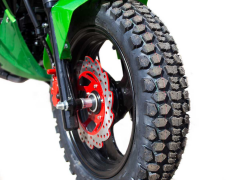 У пассажира и водителя есть небольшие обрезиненные подножки, сзади складные, спереди стационарные. Для дальних поездок это неудобный вариант, потому аппарат скорее ориентирован на развлекательное катание и непродолжительные поездки, максимум на 100 км. Об этом говорит и конфигурация покрышек, которые будут довольно шумными на твердом асфальте. Кроме того, такие грунтозацепы дают сравнительно сильные вибрации, что снижает комфорт при длительном катании.