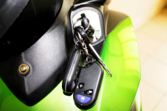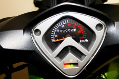 • Органы управления располагаются на руле по классической схеме, при этом, вся верхняя часть закрыта пластиком, по примеру многих закапотированных скутеров. В центре располагается компактная, но стильная приборная панель, с большим аналоговым спидометром. Над стрелкой установлен счетчик пробега, а ниже указатель уровня топлива, также аналоговый. Над спидометром фонари указания нейтрали и предупреждающие сигналы;